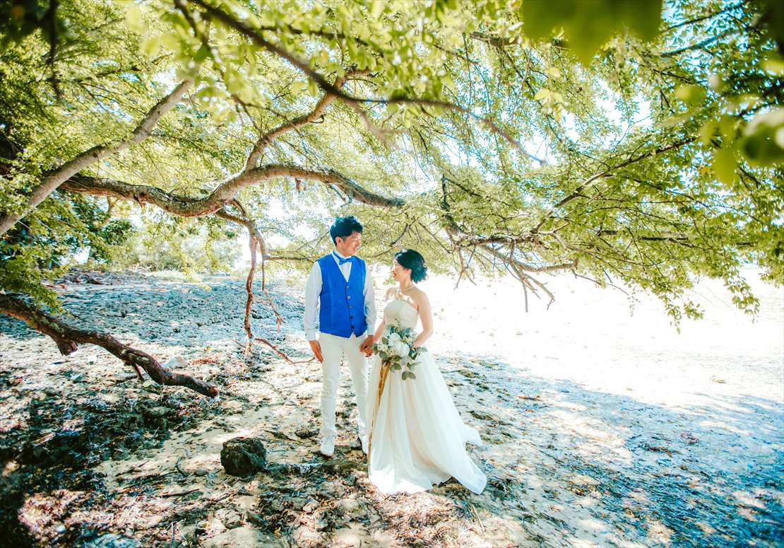 カオハガン島でのフォトウェディングの撮影プラン。90分撮影100カット納品のフォト・プランとなります。撮影シーンのご希望をいただければ、当社よりロケーションをご案内させていただくことも可能です。1ロケーション90分の間であれば複数の撮影場所・撮影ロケーション・撮影シーンのご指定が可能です。