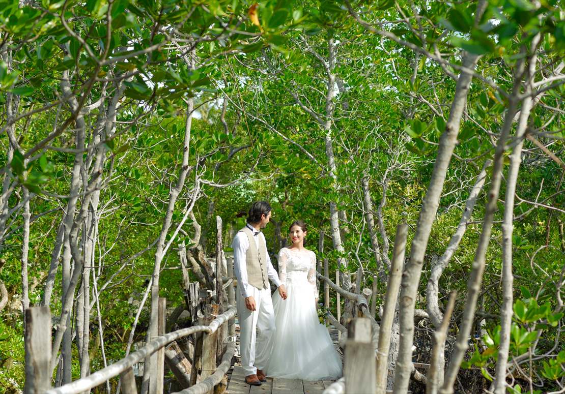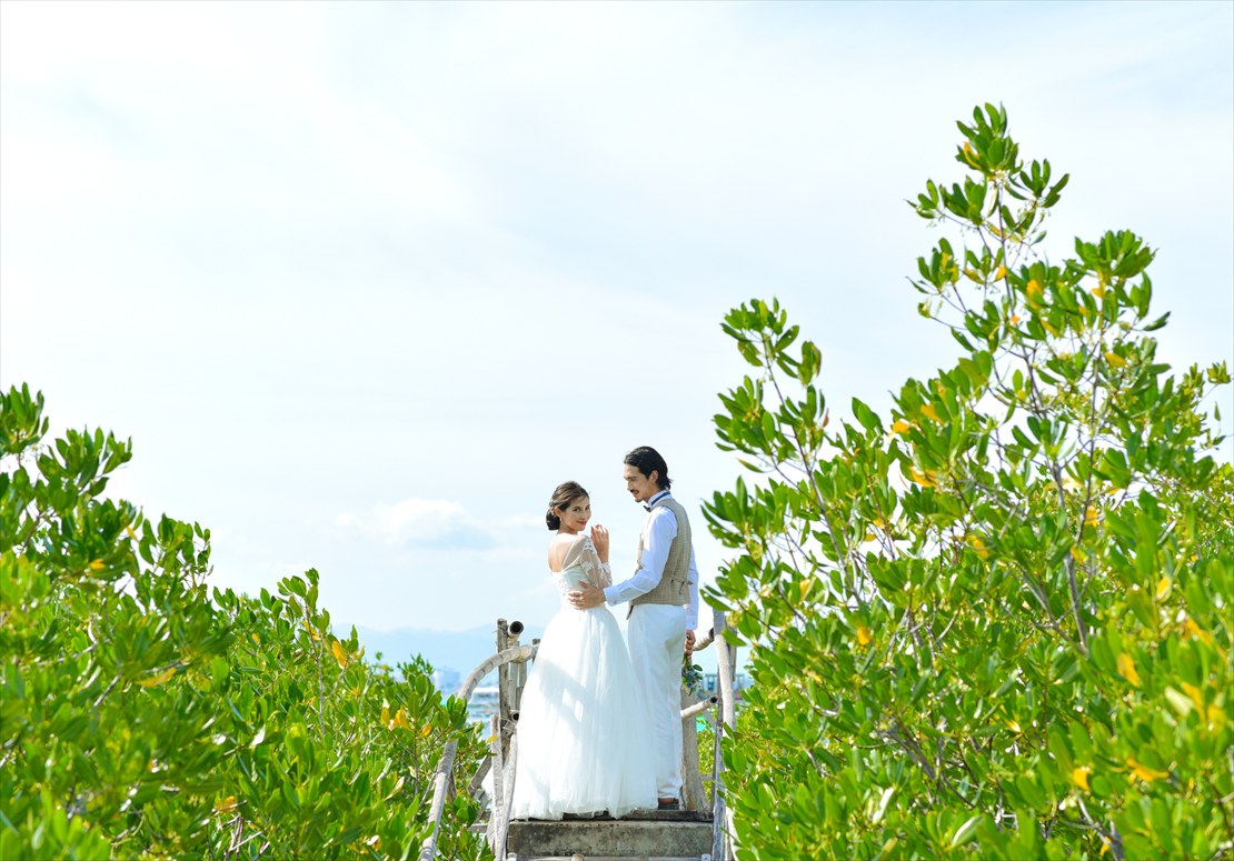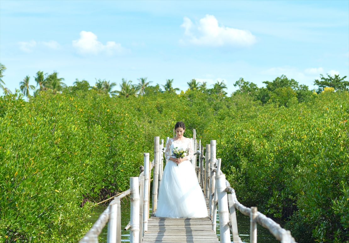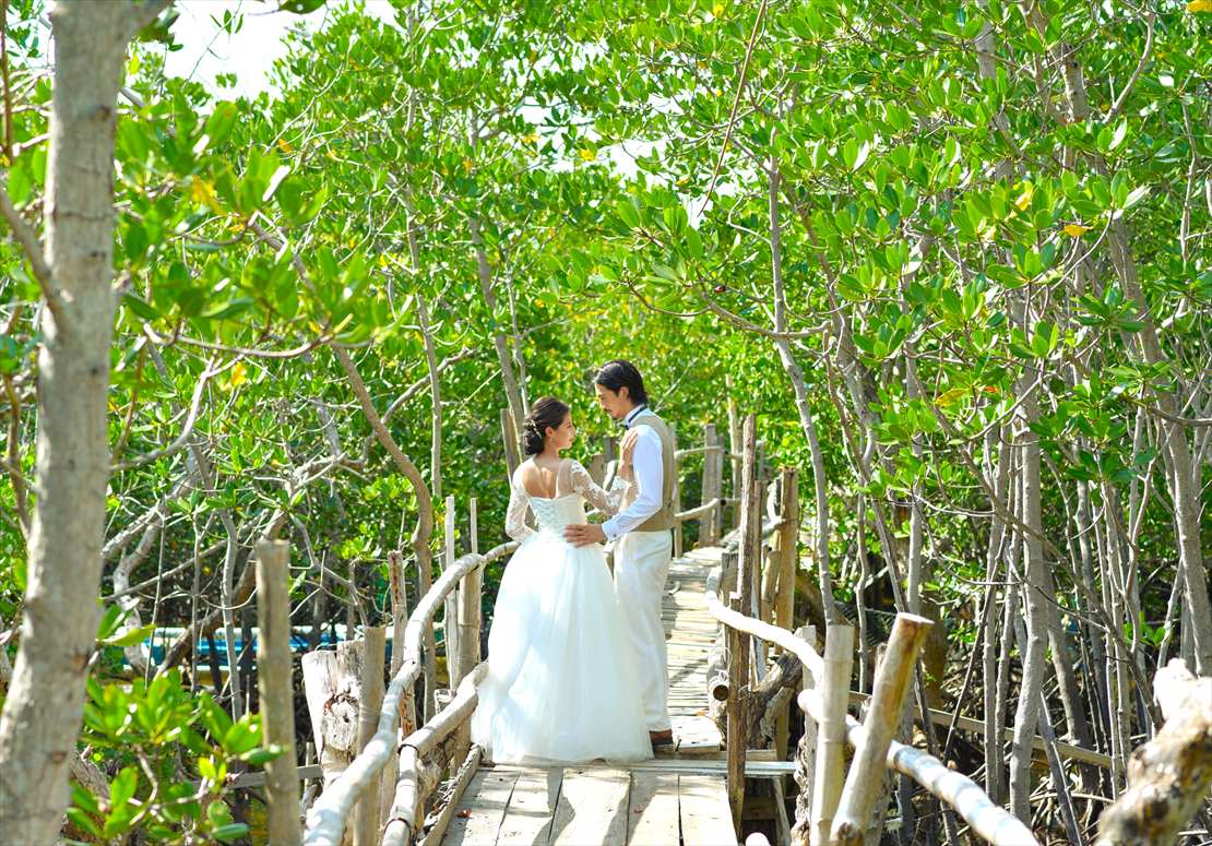 オランゴ島でのフォトウェディングの撮影プラン。90分撮影100カット納品のフォト・プランとなります。撮影シーンのご希望をいただければ、当社よりロケーションをご案内させていただくことも可能です。1ロケーション90分の間であれば複数の撮影場所・撮影ロケーション・撮影シーンのご指定が可能です。